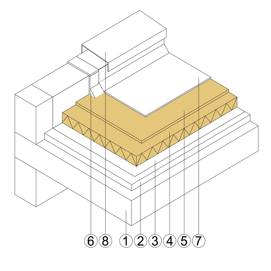 Izolacja stropodachu pełnego w tradycyjnym układzie warstw polega na ułożeniu na stropie płyt VestaEco WALL i LDF umożliwiających chodzenie.