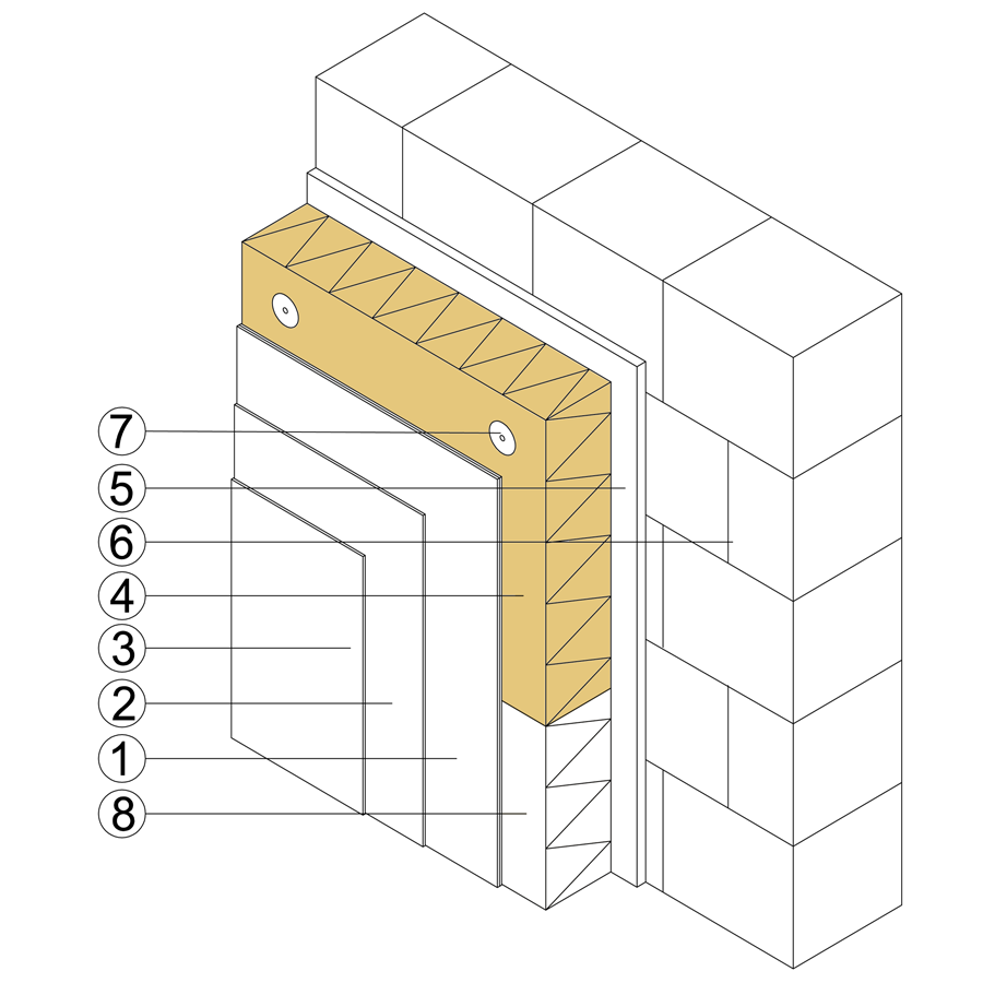 Izolacja ściany murowanej metodą lekką mokrą obejmuje ocieplenie odporną na uderzenia płytą izolacyjną VestaEco WALL. Otwarta dyfuzyjnie płyta izolacyjna ułatwia odprowadzenie wilgoci ze ściany i stanowi podłoże dla wyprawy tynkarskiej o właściwościach paroprzepuszczalnych. Mocowanie płyty do ściany murowanej przy pomocy kołków i zaprawy klejowej.
